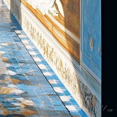 Soft marbles in creams, blush, and seafoam echo the luminous elegance of the Amalfi Coast, where light and texture evoke the serenity of Mediterranean interiors. Through photography, digital illustration, and collage, Tamara Bacchia transforms these refined surfaces into contemplative compositions of colour and atmosphere. Her works merge fragments of ancestral architecture with imagined restorations, composing spaces suspended between memory and reinvention.